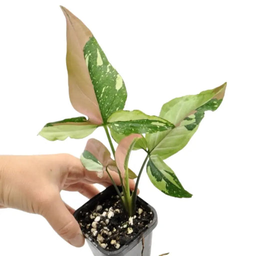 This collection often includes popular cultivars like Syngonium Red Spot and Pink Splash alongside less common types depending on seasonal availability. These plants are compact growers in their early stages but can climb with support over time, making them suitable for pots, hanging planters, or moss poles.
