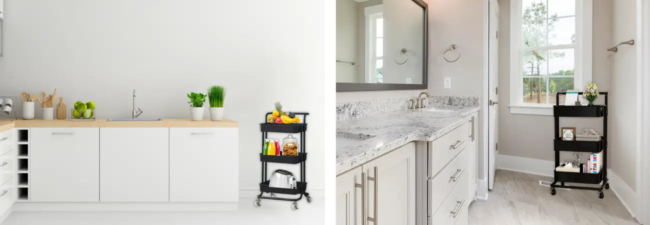 3 Tier Steel Black Trolly with Wheels