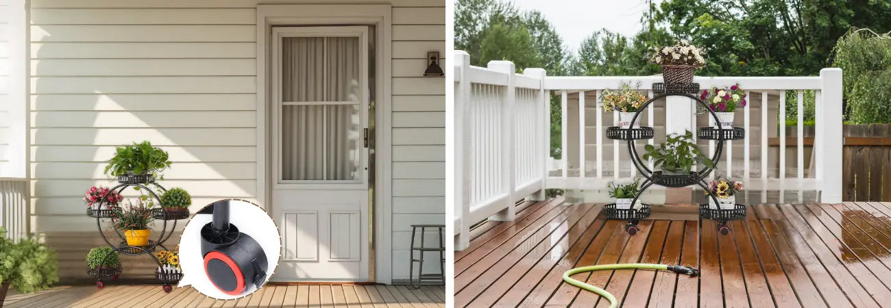 Crafted from high-quality plastic and iron, this plant stand is built to resist moisture, making it ideal for outdoor use. Whether placed on your patio, balcony, porch, or garden, it stands up to various weather conditions while maintaining its durability.