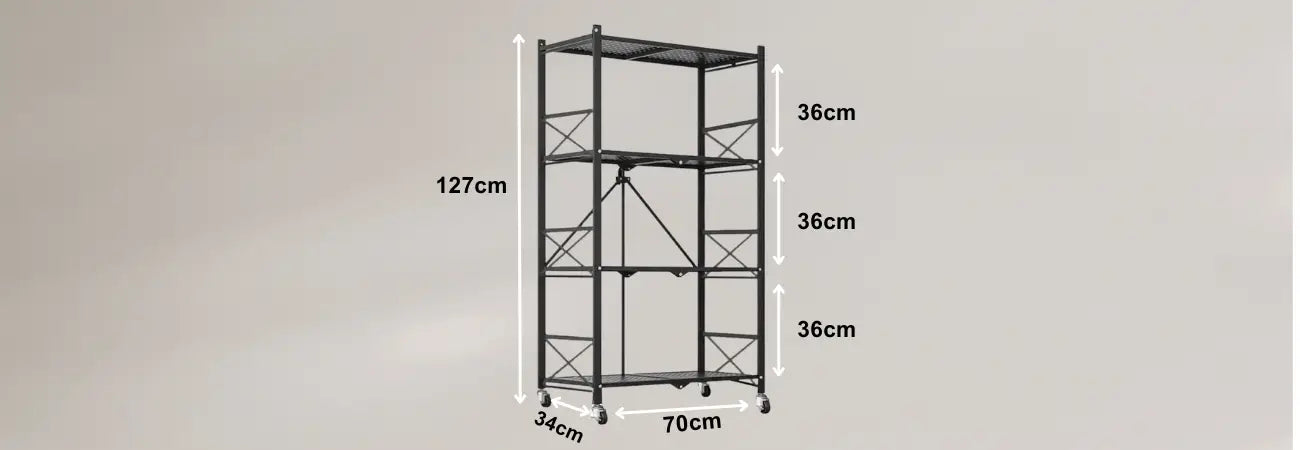 Create An Organised Space Using 4 Tier Steel Black Foldable Shelves with Wheels