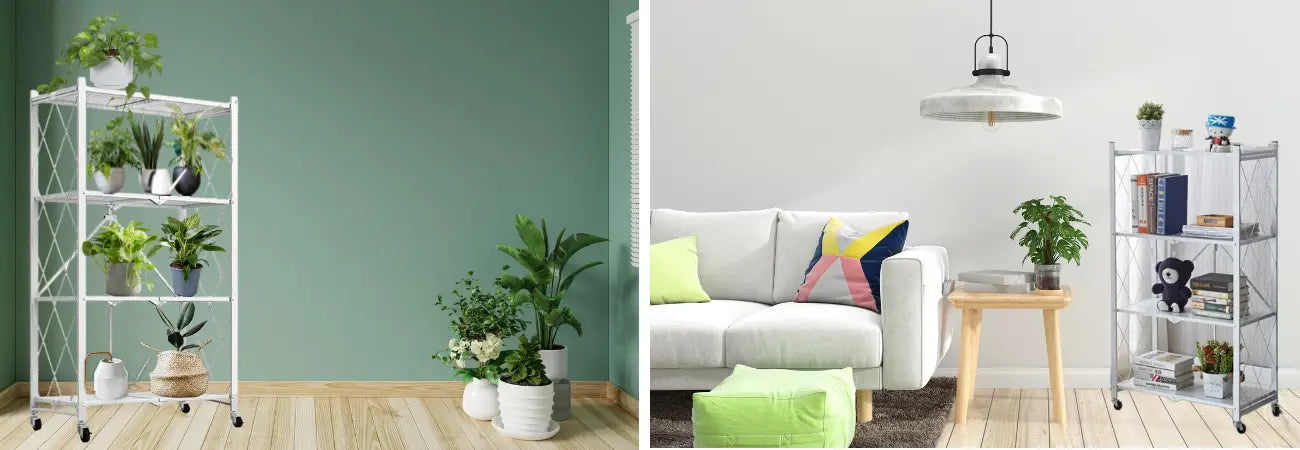 Elevate Your Storage Game Using The 4 Tier Steel White Foldable Shelves With Wheels