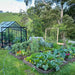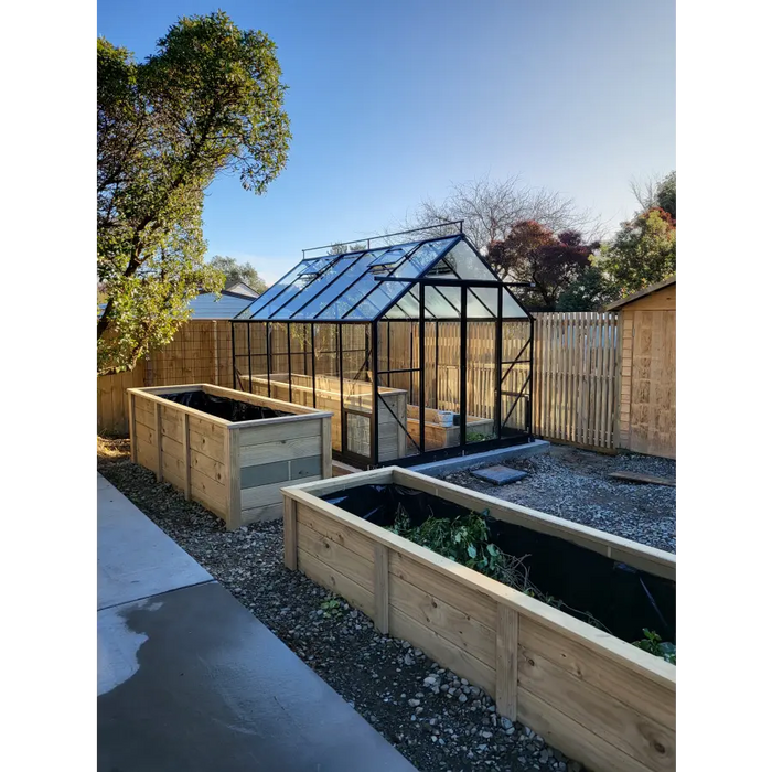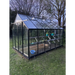 The rust-resistant aluminium frame is powder-coated in a matte black finish, delivering long-term durability and a refined aesthetic. The 2615mm ridge height allows for better airflow and space to grow tall crops or trellised plants.