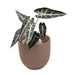 Alocasia Bebe (also known as Bambino) is a variety of Elephant Ear with deep green, arrow-shaped leaves and bold white veins. The leaves are smaller and more slender than other Alocasia types, giving the plant a neat, upright look. As far as Alocasias go, it’s one of the easier ones to care for indoors.