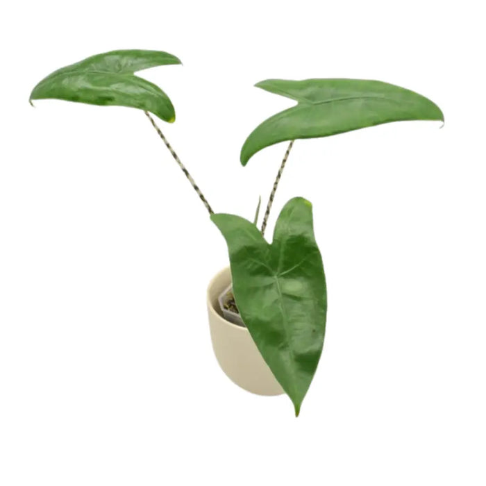 Alocasia zebrina is an eye-catching indoor plant with green, arrow-shaped leaves and distinctive stems marked by natural zebra-like striping. Its bold stem pattern sets it apart from other indoor plants and makes it a great option for display on a table, shelf, or in a bright corner. This variety is easier to care for than many other Alocasias and can tolerate cooler indoor temperatures.