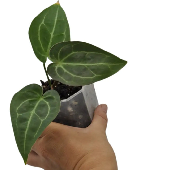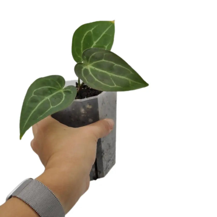 This hybrid combines the bold, veined leaves of Anthurium magnificum with the large size potential of Anthurium grande. The result is a velvet-leaf plant with strong, prominent veining and impressive growth, ideal for collectors who can meet its specific care requirements.