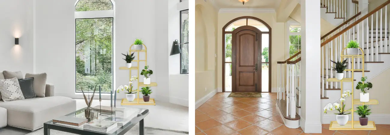 The Arched 4-Tier Gold Metal Plant Stand for 5 Planters is the perfect blend of modern style and functionality. Its sleek design, sturdy construction, and easy setup make it a must-have for any indoor plant lover. Order yours today and create a stunning display that transforms your space!