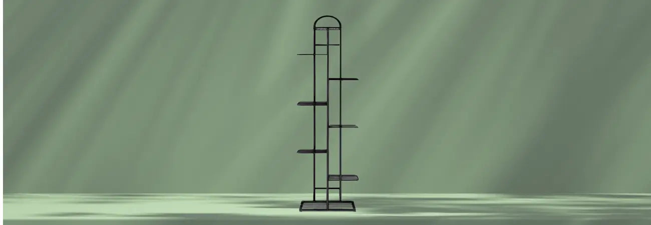 Organise Your Indoor Greenery with the Arched 8-Tier Black Metal Plant Stand for 9 Planters