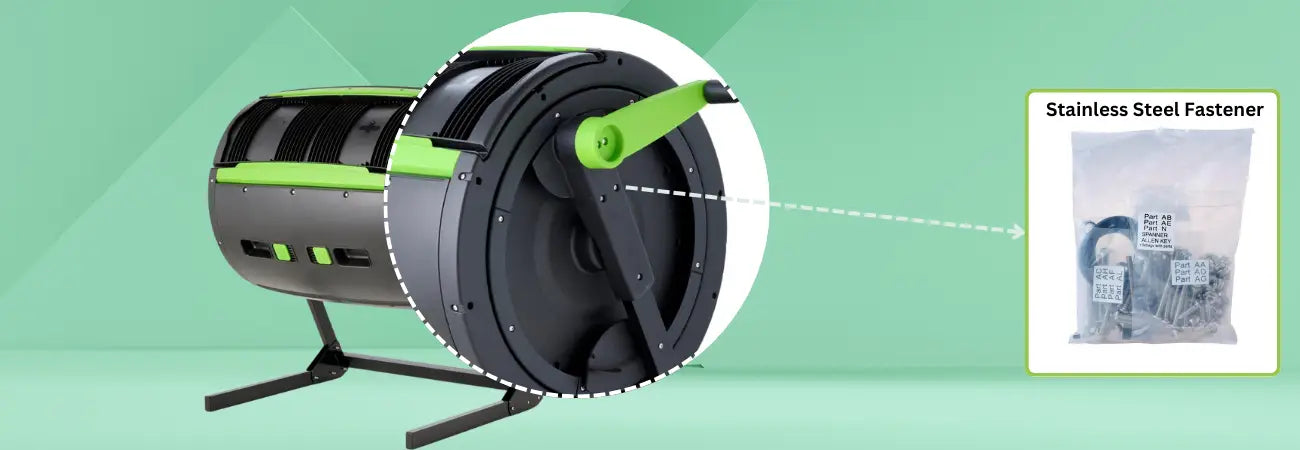 Choose the Maze 245L Tumbler with Stainless Steel Fasteners. With its practical features, durable construction, and high environmental standards, this tumbler is the perfect addition to any home committed to sustainability. Start transforming your waste into valuable compost today!