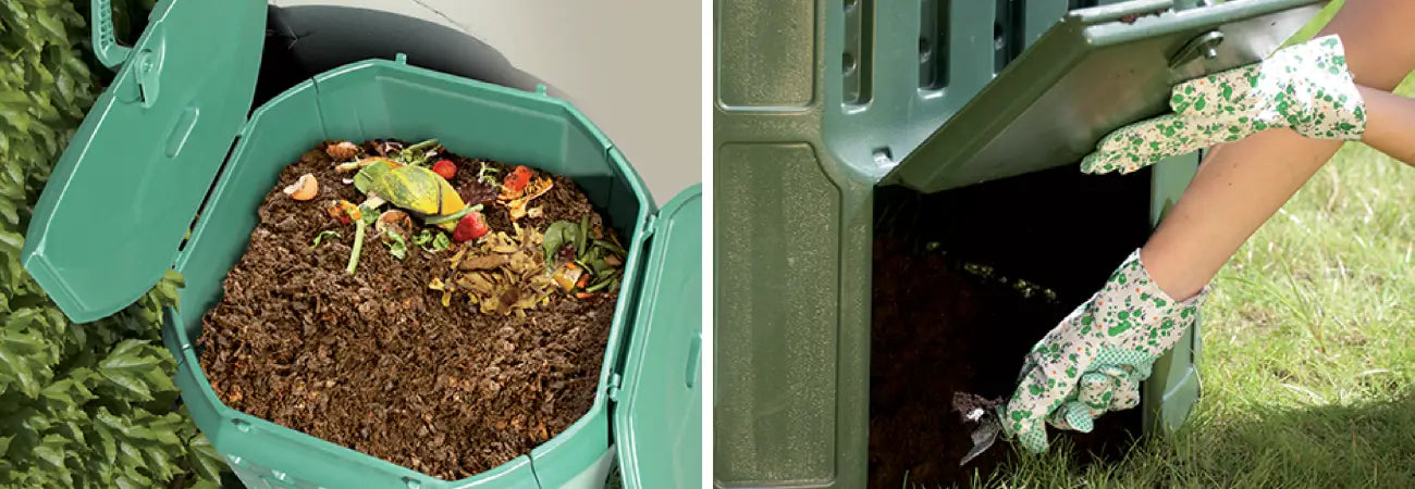 - Lower hinged hatches for easy compost collection