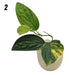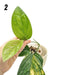 The plant pictured is the exact plant you will receive. You can clearly see the lighter green section on the newest leaf of plant 1, which will fade to yellow as the leaf matures. These sections are harder to see on the newer leaves of plant 2 because it will display a more mottled style of variegation. Although it may be difficult to tell in the photos, we are confident that both plants will show beautiful variegation as their leaves mature - plant 1 a blocky style of variegation, and plant 2 a mottled style.