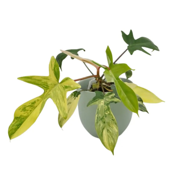 The Philodendron Florida Beauty is a rare and striking variegated form of the classic Philodendron Florida. Known for its unique multi-lobed leaf shape and bold green and creamy yellow variegation, this aroid is a true collector’s plant. No two leaves are alike, making each specimen a unique addition to any plant collection.