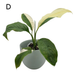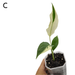 The plant pictured is the Spathiphyllum Picasso you will receive, showcasing its unique variegated leaves. Plant A is growing in a 100 m round grow pot, plant B is growing in our medium (90 mm) square translucent grow pot, and plants 1 and 2 are growing in our small (70 mm) square translucent grow pots.