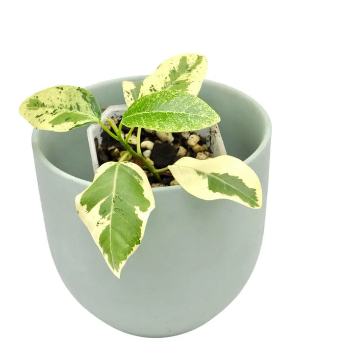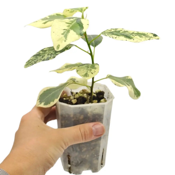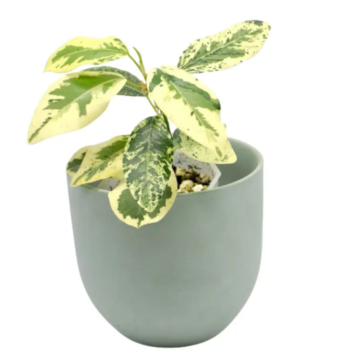 The Variegated Ficus rubiginosa, also known as the Port Jackson Fig, is a striking, hardy fig with beautifully mottled green and creamy-yellow leaves. Native to Australia, this species is well-loved for its adaptability, resilience, and stunning foliage, making it a standout feature in any collection.