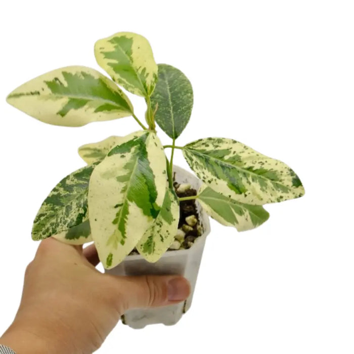 • Unique Variegation: Features a mix of deep green and yellow-cream splashes on each leaf.